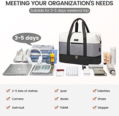 1 Large Capacticy 2 Shoe Compartment 3 Storage Bag 4 Toiletries Bag