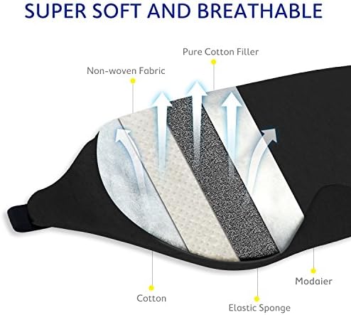 🌙Super Soft And Comfortable – This sleep mask features 5 layers of super breathable fabric, including cotton, elastic sponge and modaier, which offers you ultra soft and fresh touch on eyes.