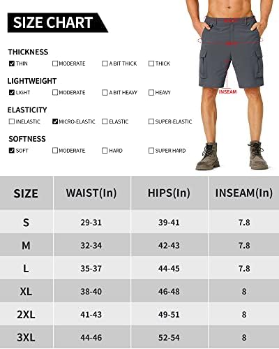 Water-resistant: The quick dry fabric with great water repellent treatment, effectively repels stains and liquids. The men hiking shorts keep you cool and dry all day, and provide a comfortable exercise environment.