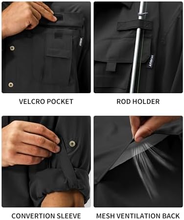 HUGUT Men’s Sun Protection Fishing Shirts Lightweight Breathable Clothing Great for Fishing Hiking Work Outdoor