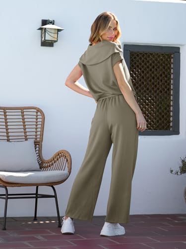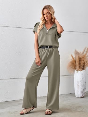 MEROKEETY Women Two Piece Outfits Half Zip Lapel Cap Sleeve Sweatsuit Set
