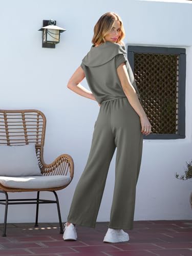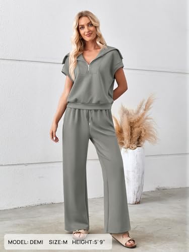 MEROKEETY Women Two Piece Outfits Half Zip Lapel Cap Sleeve Sweatsuit Set