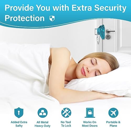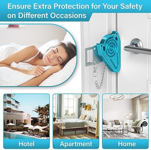 Home Travel Safety and Security Metal Portable Door Lock for Travel Hotel Room Safety – Hotel Door Locks for Travelers Door Lock Security, Extra Lock from Inside, Apartment Home Security Device Travel Essentials,Blue