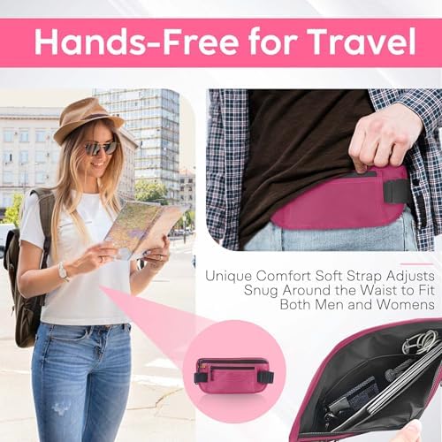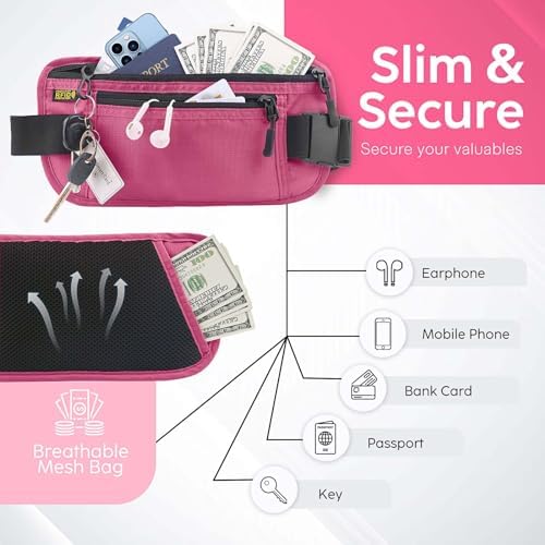 Slim Lightweight & Hidden Security–Our slim concealed travel money belt has enough room to store and hide your belongings like your iPhone, keys, money, credit cards, documents, passport and more.