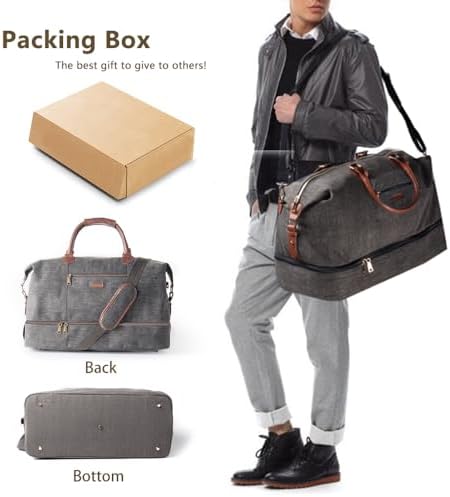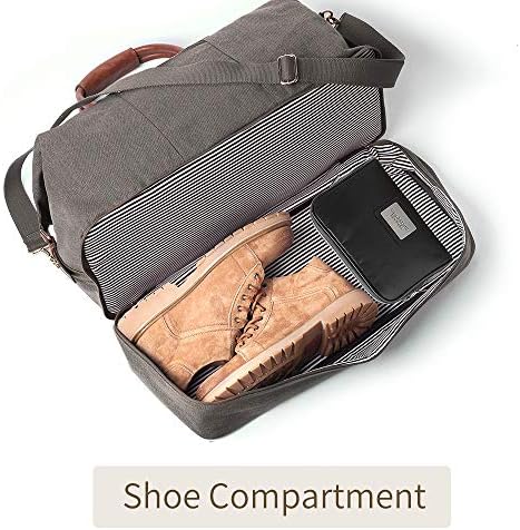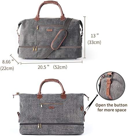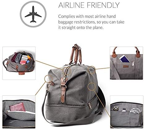 HAND-CRAFTED DESIGN: The large and spacious weekender bag is created with premium quality canvas and soft, faux leather accents. The interior is finished with a luxurious cotton lining that looks fantastic and protects your items wherever you take them.