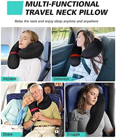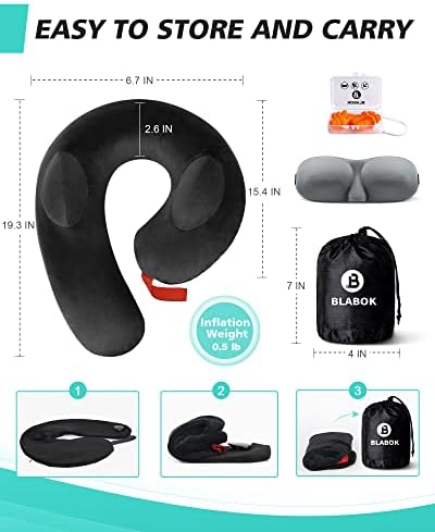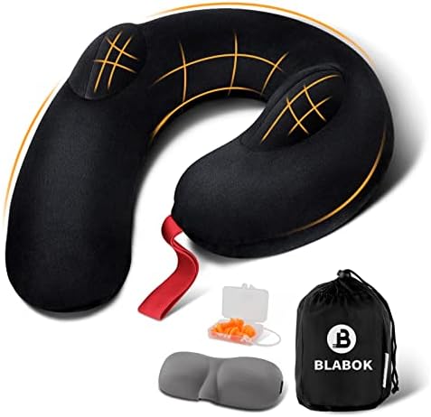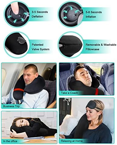 Home Comfort and Sleep Aids Neck Pillow for Travel, Inflatable Travel Neck Pillows for Airplanes, Travel Pillow for Sleeping Airplane-Avoid Neck&Shoulder Pain,Support Head and Neck, for Airplane,Train,Office,Home (Black)