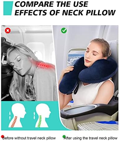 【Soft Support Material】The airplane neck pillow constructed with high quality velvet fabric, Luxurious and breathable, can make you feel more comfortable than ever. The neck support travel pillow’s adjustable elastic band design easily adapts to various body shapes, prevents the head from falling forward, relieves neck pain during travel.