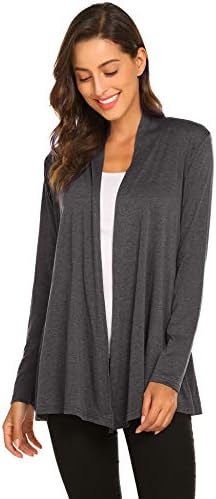 Lightweight knit cardigan sweater for women with long sleeves, open front design, and loose fit for comfortable wear.Made from a stretchy, breathable viscose blend that keeps you comfy in warmer weather.Perfect for layering over tanks and tees for spring, summer, and fall seasons.Great for office, church, travel, and transitional weather; pairs with tanks, blouses, tees, jeans, leggings, skirts.Perfect versatile cardigan to dress up casual looks for work, school, travel, evenings out, and more.Available in sizes S-XXXL. Model is 5’8″ wearing a size Small.Machine washable knit fabric.