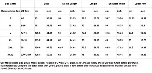 XXXL-US(22W-24W): Bust–52.34; Sleeve Length–25.43; Length–29.64;Bicep–16.97;Shoulder Width–17.79