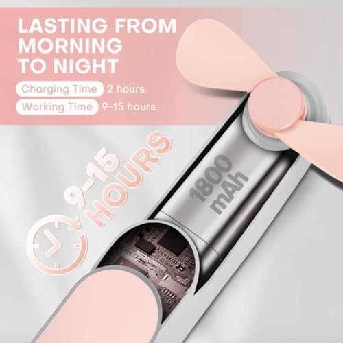 🧊【Portable Design and Mini Size】- The foldable design makes it easy to carry and store. Besides, with the oval shape(1.3*1.3*4.7 Inches, Weight: 4.4 Oz), this rechargeable fan can hide the fan blade, small and easy to slide into your pocket and purse, with no frame design, it makes noise low to 50db that causes no bother during work.