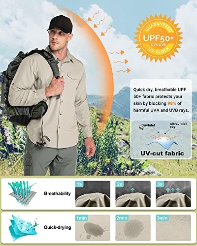 Home Travel Clothing Outdoor Ventures Men’s UPF 50+ UV Sun Protection SPF Hiking Shirt Long Sleeve Lightweight Quick Dry for Safari Travel Fishing