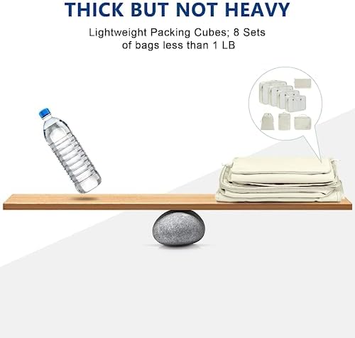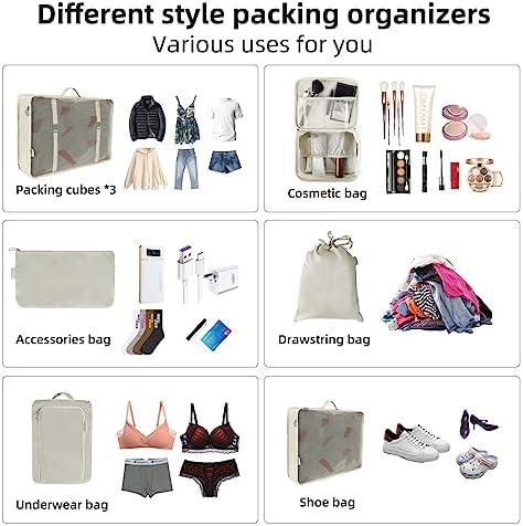 【8 Pcs Traveling Organizer Bags for Luggage】The suitcase organizer bags set including Include 3 single travel cubes for clothes, 1 cube for underwear, 1 drawstring bags for dirty laundry and cosmetic, 1 make up bag for cosmetic and toiletries, 1 shoes bag for shoes, 1 small bags for socks, coins, pens, keys etc. These suitcase organizer bags can be a good way to store all the items you travel, making the items more neat and orderly, but also can save your luggage space