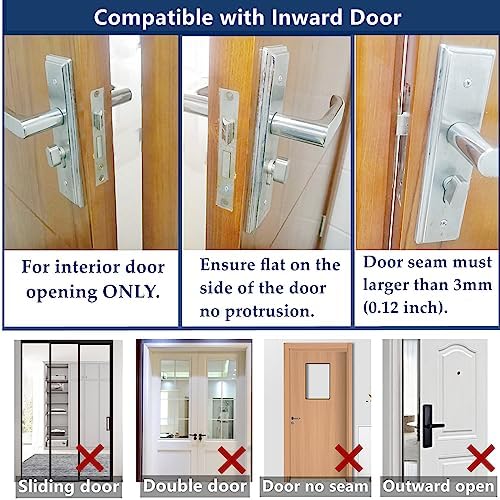 【Compatible with most doors】 This safety hotel lock is suitable for following points: 1. Only fit for interior door opening; 2. Ensure flat and no protrusion on the side of the door 3. The door gap must over 3mm (0.12 inch).