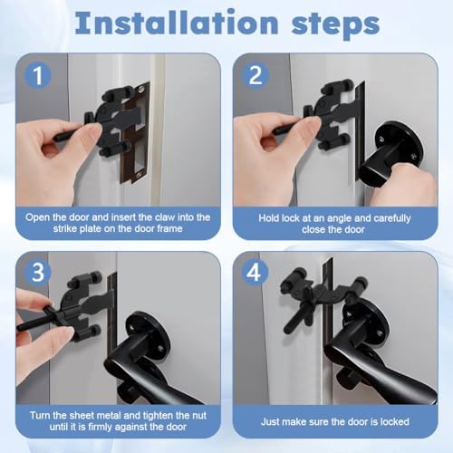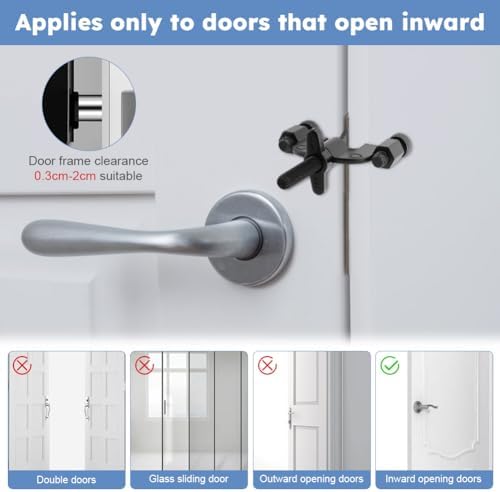 【STYLISH DESIGN】The black finish of the door lock adds a touch of sophistication to any door. Its simple and modern look complements any decor, making it a stylish and practical accessory for travelers and homeowners alike. It will be a stylish and practical door accessory.
