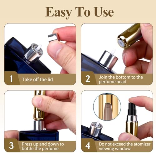 Refillable – Travel perfume bottle refillable with a valve on the bottom of atomizer, mini spray bottles with easy pump-to-fill technology, rapidly refill in seconds from the bottom, easily remove.Pump up and down firmly until full, but Do not over fill.