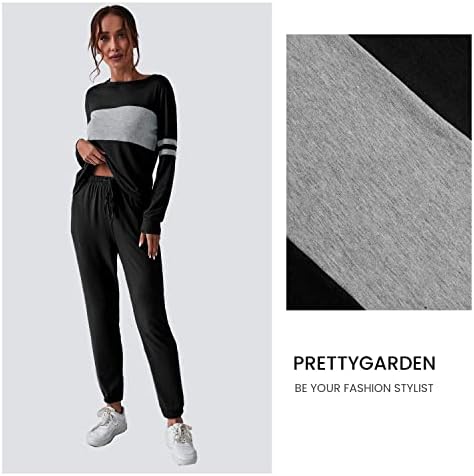 PRETTYGARDEN Womens Classic Color Block Jogging Suits Long Sweatpants
