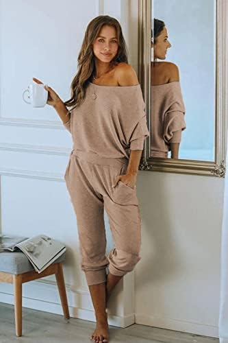 PRETTYGARDEN Women’s Long Sleeve Off Shoulder Sweatshirts And Long Sweatpants Set