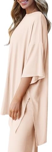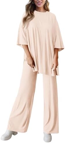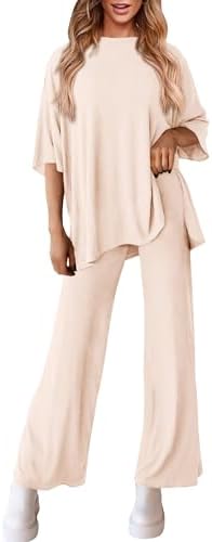 PRETTYGARDEN Women 2 Piece Outfits Casual Short Sleeve Top Long Pants Lounge Set