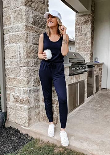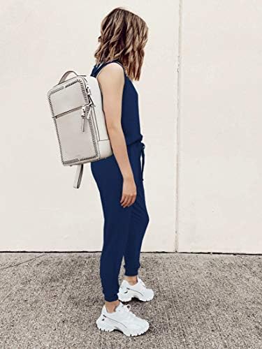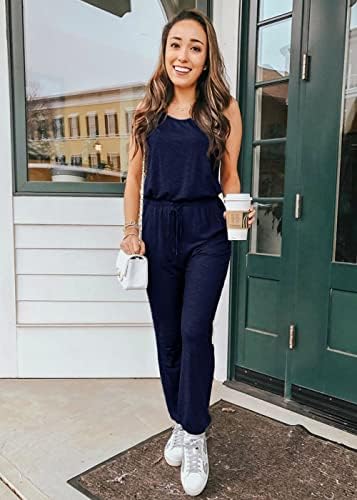 snugwind Womens Casual Sleeveless Strap Loose Adjustable Jumpsuits Stretchy Long Pants Romper with Pockets