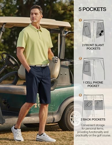 PULI Mens Golf Hiking Shorts Lightweight Casual Dress 12″ Inseam Work Stretch Travel Hybrid Quick Drying with Pockets