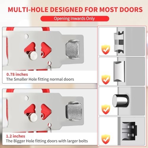 【Versatile Fit for Various Doors】Our security door stopper features two different hole sizes to ensure compatibility with most door locks. This unique personal safety device is perfect for your home, hotels, college dorms, Airbnb accommodations, short-term rentals, and bedrooms. It’s also effective in preventing pets from escaping and safeguarding children against strangers entering their rooms.