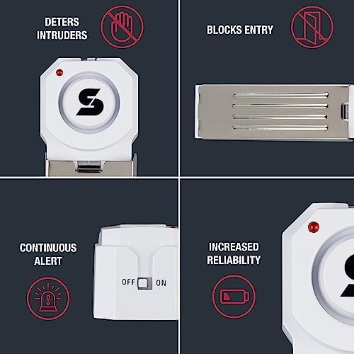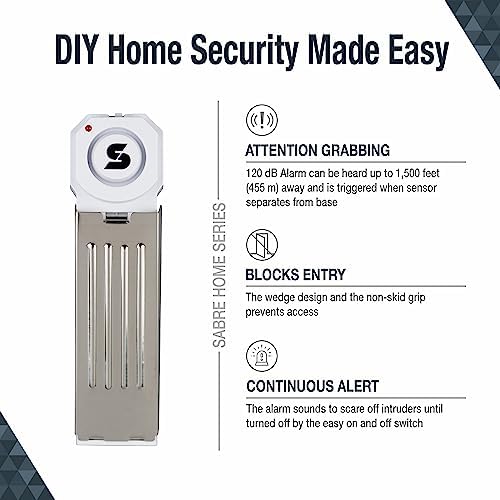 A burglary occurs every 14.5 seconds in the U.S., and budget cuts have led to an average 911 response time of 10 minutes. Furthermore, without the ability to install a home security system, renters and travelers can have a hard time feeling secure in their temporary housing. SABRE’s Door Stop Alarm is a great solution to either help fortify an existing home alarm system or use on its own in a bedroom, dorm, hotel room or apartment. The extremely 120dB loud alarm is audible up to 1,500-feet (455-meters) away and sounds when door pressure is applied. It is compatible with doors that have a 0.75″ gap between the floor and bottom of door (if the gap is greater, the alarm will not be able to activate when the door is opened). The alarm is coupled with a non-skid pad to prevent the door from opening. This attractive, premium white alarm installs easily in just seconds – simply slide it under the crack of an inward-swinging door. There’s no wiring needed, so the alarm works during power outages. Requires 1x9V battery (not included). A small Philips Head #1 size screwdriver is required to remove battery compartment cover. For an extra level of security, the Door Stop Alarm provides a battery status update via a low battery indicator. The Door Stop Alarm was developed by SABRE, the #1 pepper spray brand trusted by police and consumers worldwide, meaning this product is extremely reliable. Backed by over 45 years in the security industry, SABRE products must pass rigorous quality assurance testing before leaving our facilities to give you peace of mind. Improve your home security today.