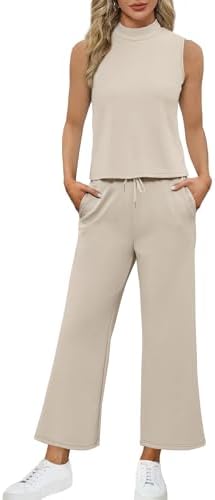 ANRABESS Women’s 2 Piece Sets Summer Outfits Sleeveless Wide Leg Tracksuits Casual Sweat Sets Lounge Sweatsuits