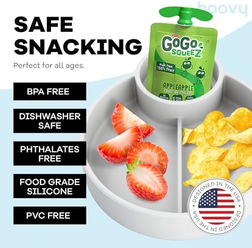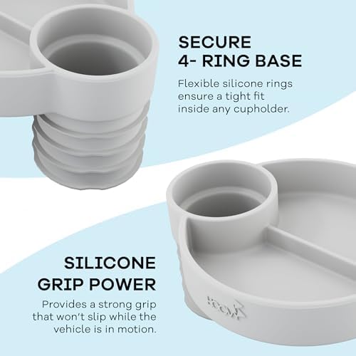 STURDY & SECURE BASE – Made from 100% silicone with a secure 4-ring base, this car tray for kids is designed so it won’t slip out of the cup holder, as family road trip essentials for storing snacks while the vehicle is in motion or going over bumpy surfaces.