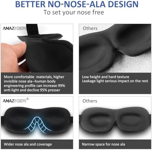 AMAZKER Sleep Mask is specifically designed with the ultralight design blocks light and gently hugs the face without pressure.