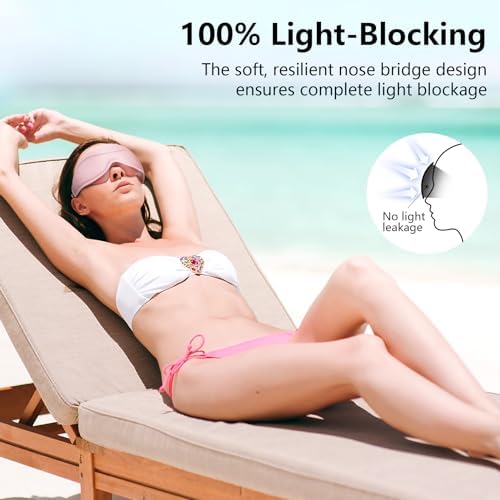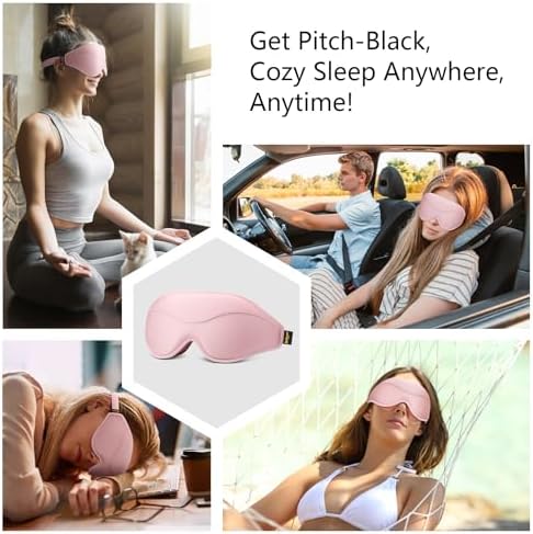 [ Total Blackout and Comfy Sleep Mask ] New Version. Thinner and Lighter. The comprehensive design of this sleep mask features an adaptive one-piece nose bridge and a deep inner space for the eyes, ensuring 100% light blocking with a snug and comfortable fit.