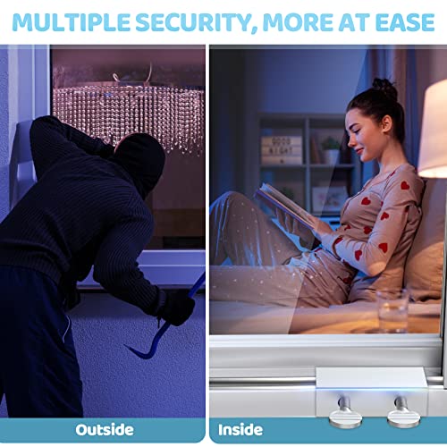 UPGRADED WINDOW DOUBLE LOCKS WITH RUBBER BRING MORE SECURITY: This glass sliding window lock with rubber has two fixing holes, which greatly enhance the holding power and security of the lock. Upgraded rubber can protect your window track from damage. Every Family will benefit from the adjustable window lock because window lock can keep the family peace of mind every day and prevents pets from getting lost, prevent thieves and improves indoor ventilation when you travel or go out.