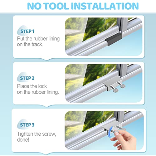 QUICK & EASY TO INSTALL, SAVE TIME & EFFORT: No need for extra installation tools or drilling required 3-step quick installation. Just place the lock in a suitable position and tighten the screws! The removable rubber lining can help us have two flexible ways to lock the window or doors. But the rubber lining is useful for reducing window tracks’ scratches and damage. 10 sets of safe window locks can reuse, and even women or the elderly can also easily complete this installation process alone.