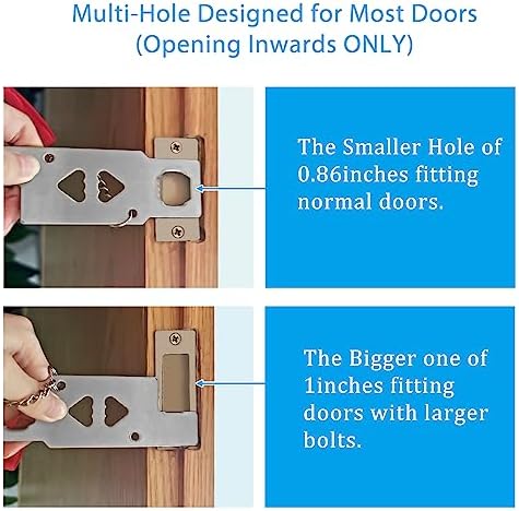 【 Wide Application 】-The portable door lock has two holes of different sizes to fit all types of door lock. Perfect for hotels, apartments, Airbnbs, dormitories, short-term rentals. Also avoid pets going out, and prevent child from opening doors to strangers