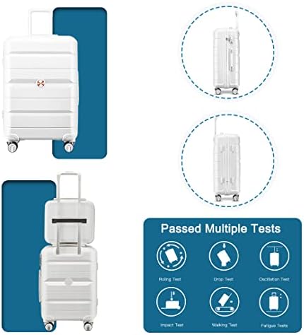 Home Travel Clothing Somago Luggage Sets 3 Piece Spinner Hardside PP Suitcase with TSA Lock 4 Piece Set with 6 Set Packing Cubes for Travel (Creamy White)