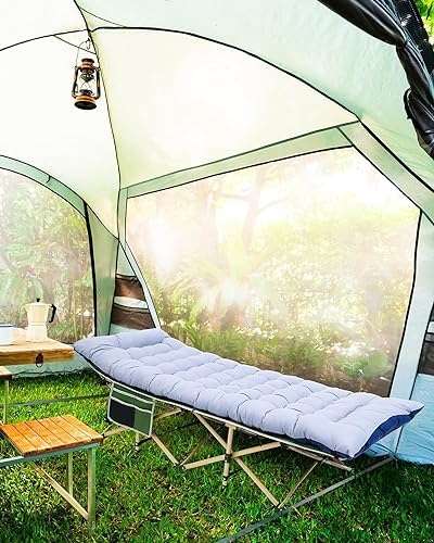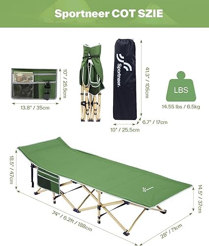 Comfortable Mattress: Sportneer Camping Cot with mattress, soft pad add extra comfort, you can sleep more comfortably in this portable foldable bed for camping. In summer, the camping cot for adults can also be take away to increase the breathability.