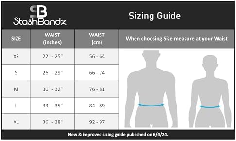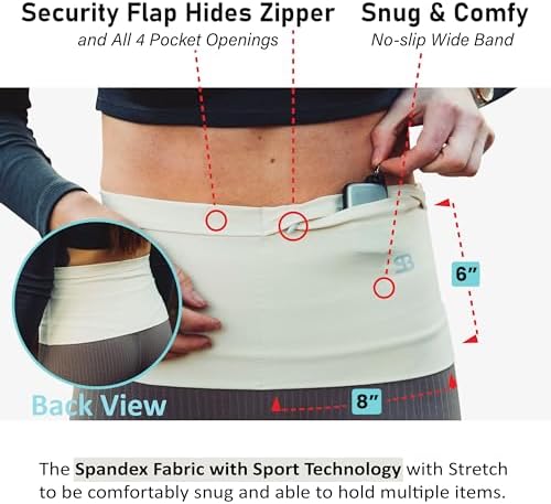 Find your perfect size with the new and Improved Size Guide! Do you need a versatile belt for fitness, travel, or medical reasons? Non-bulky even when carrying your valuables. Our StashBandz waist pack holds any size any brand phone and other necessities with ease. The extra wide band has 4 large pockets measuring 6 x 8-inches. One of the pockets has a large zipper compartment located in front. Unique custom design with fold over flaps to disguise the belt and adds extra security to topping loading pocket so items will not fall out. The fabric stretches vertically to 7-inches for fitting larger phones and various brands of medical devices. The slim design keeps our running belt comfortable without any bounce when exercising. The style also prevents muffin tops when wearing under or over your clothes. Our running belt is made of high-quality spandex. Check our size chart located in the images, for the best fit. Machine washable cold only. Drip dry is best for long wear over the years. Whether you are runner, walking, traveling, hiking, going to a music festival, or daily running errands, our comfortable stretchy belt band is a perfect accessory for you. Made with high-quality sports technology fabric great for mobility during travel and active movements Fits Ambulatory Medical Devices. Holds insulin pumps, T-slim, EpiPens, all size ambulatory med pumps, Cadd Legacy pumps, chemo pumps, LVAD controllers, and StimWave devices plus your daily essentials. Secure your Passport, Credit Cards and Cash. Travel with peace of mind. Great to use as a money belt. Pickpocket-proof! Non-bulky even when carrying your valuables.
