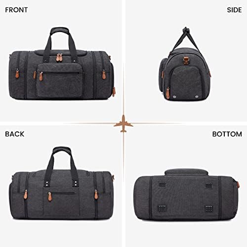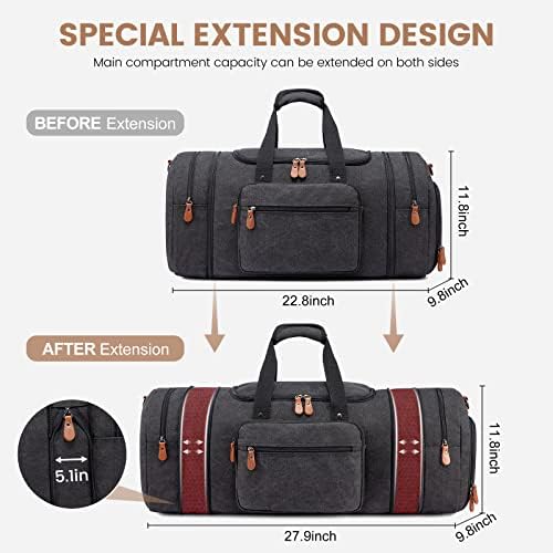 【Expandable Design & Fine Craftsmanship】: 22(L) x 9.8(W) x 11.8(H) inch. Pull down 2 side zippers to extend the bag to 26 inches long. This travel bags for men come with rounded stitched grip handles & padded adjustable, removable shoulder strap. It has 3 carrying ways: hold on hand, carry on the shoulder or cross body.