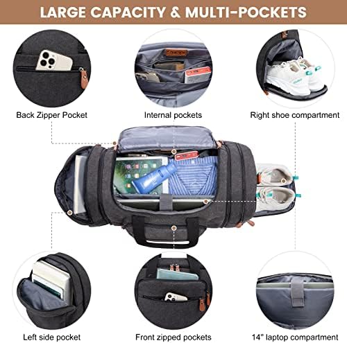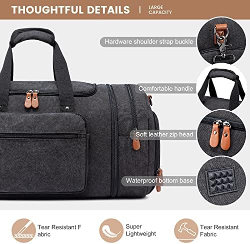 Sucipi Canvas Duffle Bag for Travel Overnight Carry on Bag with Shoe Compartment Weekender Duffel Bag with Toiletry Bag for Airplanes,Dark Grey