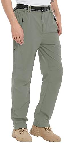 TBMPOY Men’s Lightweight Hiking Pants with Belt 5 Zip Pockets Waterproof Quick-Dry Travel Fishing Work Outdoor Pants