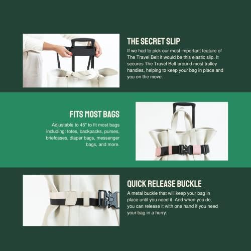 FITS MOST BAGS – The secret slip secures your luggage belt strap to the suitcase handle keeping it in place. The luggage belt is adjustable to 45” to fit most totes, backpacks, purses, briefcases, diaper bags, messenger bags & more.