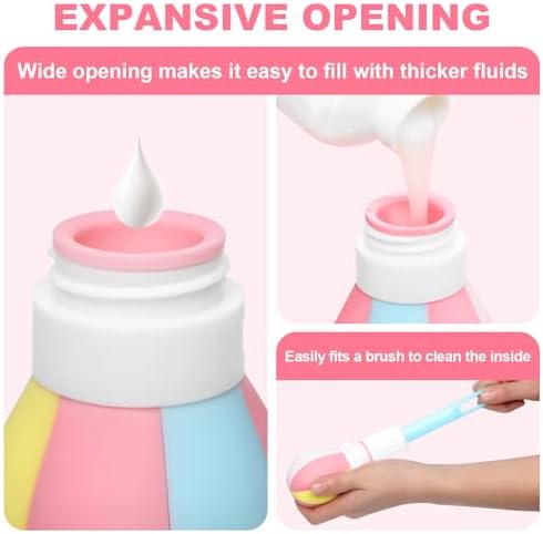 🎈Wide Opening Design – These Refillable Travel Bottles featured wide mouth design that easier to pour thicker liquids, such as shampoo, conditioner, shower gel, sunscreen, body lotion, moisturizer, facial cleanser, etc. Also can clean bottles inside by brush easily.