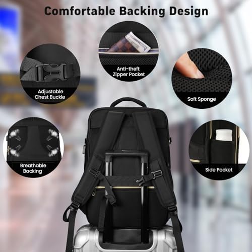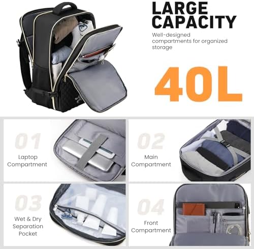 Travel Backpack for Women, Flight Approved Carry On Backpack, Large 40L Suitcase Backpacks Waterproof Luggage Bag Weekender Daypack Fit 17 Inch Laptop, Black