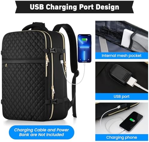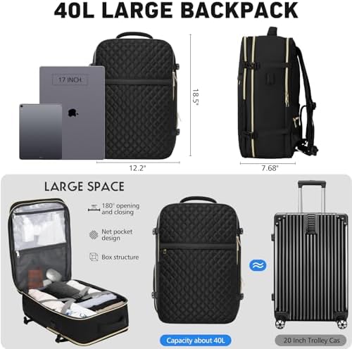 Home Luggage and Bags Travel Backpack for Women, Flight Approved Carry On Backpack, Large 40L Suitcase Backpacks Waterproof Luggage Bag Weekender Daypack Fit 17 Inch Laptop, Black