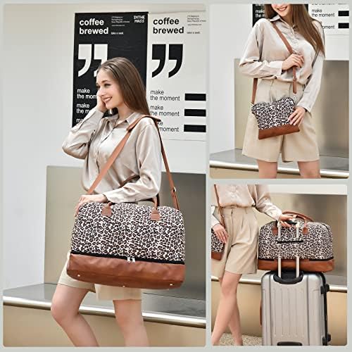【TRAVEL TOTE BAG WITH SHOE COMPARTMENT+FREE SEPERATE TOILETRY BAG】This travel bags for women comes with a crossbody bag and a toiletry bag to store your cosmetics/toiletries. Separate flat bottom compartment of this duffle bag women can hold your shoes or dirty clothes for easy separation from clean clothes when traveling.If you’re a novice mother, the bottom part is also perfect for storing diapers/wipes/diaper bag items. It can also be used as a hospital bag,mommy bag and medical bag.