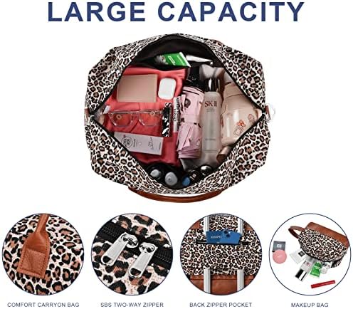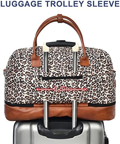 【CARRY ON BAGS FOR AIRPLANES】Sizes: 20.5 x 13.5 x 9.5 inch,2.5Lbs,Leatvook weekender bag for women meets most international carry-on requirements. Fits in the overhead compartment as well as the under seat as Personal Items in flight. Integrated trolley sleeve slides over rolling luggage handle making airport travel a breeze. One zippered pocket on the back to hold your smart phone, IDs or passport. Your ideal overnight weekend boarding bag for business or personal travel.