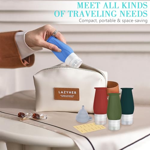 TSA Approved Travel Toiletries Pack:The TSA Approved silicone travel bottles Pack includes a clear plastic bag and 1 sheets of stickers with 12 different Label, very suitable for shampoo, conditioner, body wash so you can easily identify product inside content. The pack is also lightweight and compact, making it easy to carry with you wherever you go.