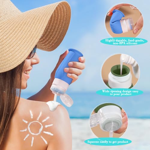 The Wide Mouth Design Bottle:The silicone travel bottles for toiletries is designed with a wider opening, Just unscrew the lid and pour in the liquid,for example lotion, shampoo and conditioner your desired liquid, making sure not to overfill it.