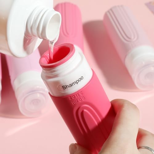 Food Grade Silicone:The travel toiletry bottles are made of food grade silicone, ensuring durability and safety for storing all types of liquids, including shampoo, conditioner, lotion, and more.