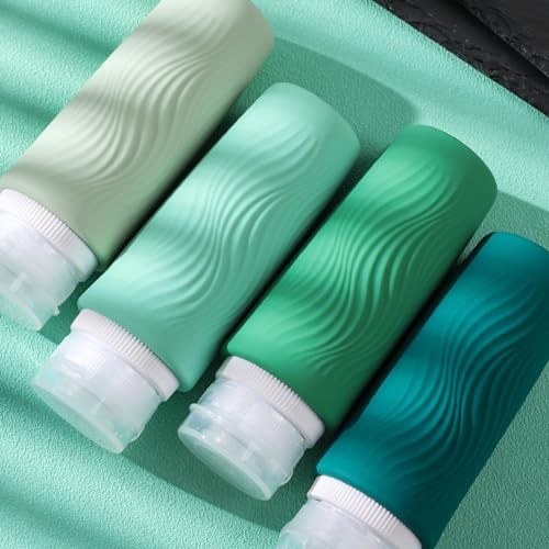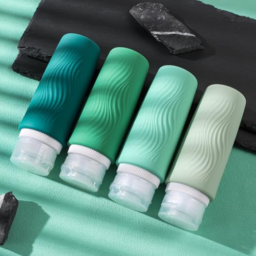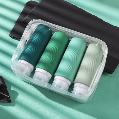 TSA carry on approval: 4 pack 3oz silicone travel bottles, very suitable for shampoo, conditioner, shower gel, lotion, hand sanitizer and shower gel. It is equipped with a high-quality zipper transparent wash bag, which saves space and allows you to travel long distance freely like a professional.