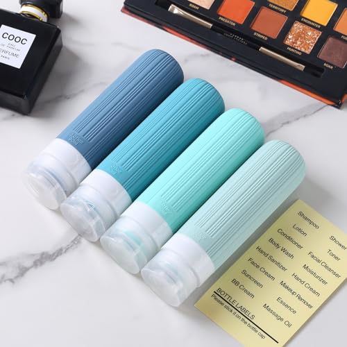 【TSA Approved and Portable】4 Pack 3oz silicone bottle is a TSA approved Capacity that allows for unobstructed boarding. Come with a zipper sealed transparent wash bag, it saves much space when traveling and carry your daily-used shampoo, conditioner, body wash, lotion, shower gel, hand sanitize etc.